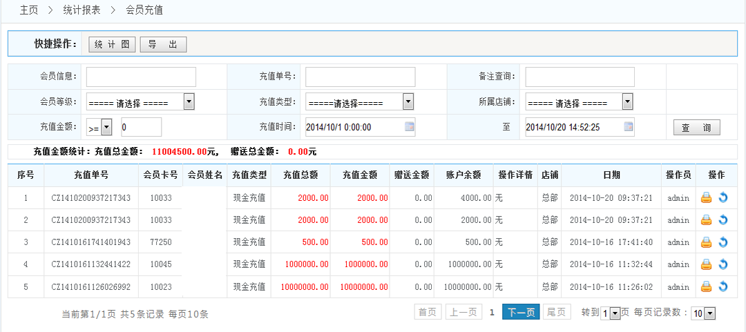 會(huì)員充值統(tǒng)計(jì):