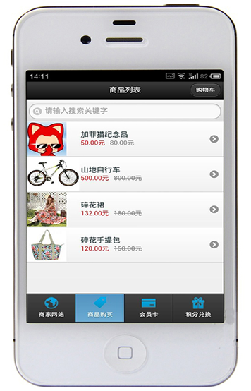 1.商品列表:在導(dǎo)航欄點(diǎn)擊商品購買 將跳轉(zhuǎn)到商品列表頁 所有在后臺(tái)添加的商品,將會(huì)顯示在列表中(見下圖)