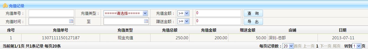 1.查詢:可以根據(jù)充值單號(hào) 時(shí)間段 充值類型等條件查詢