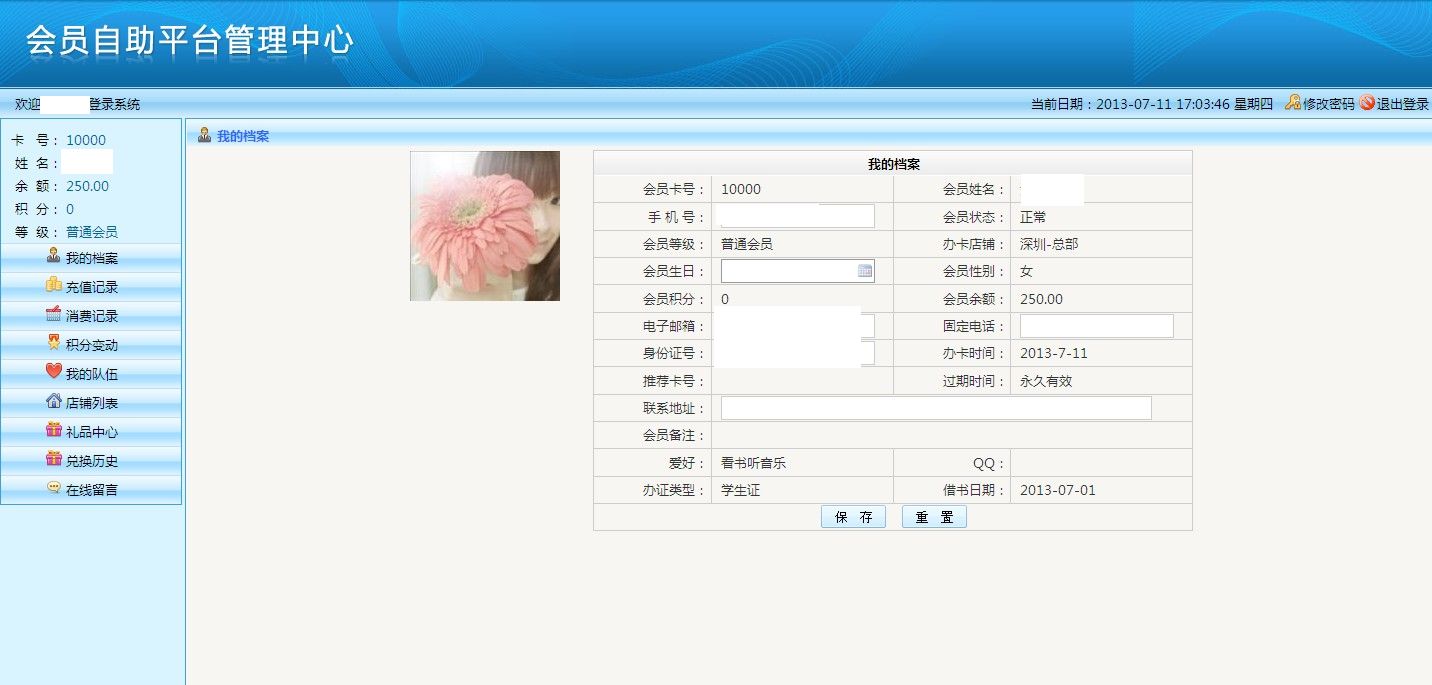 -> 五通一卡通云會員管理系統(tǒng)我的檔案